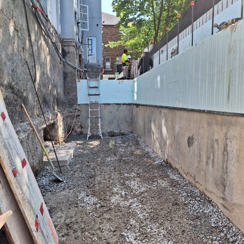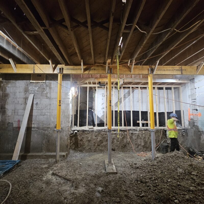 Utilize the existing building and foundations including designing an underpinning sequence that keeps the original foundation, maintaining character and eliminating the extra cost of a new foundation