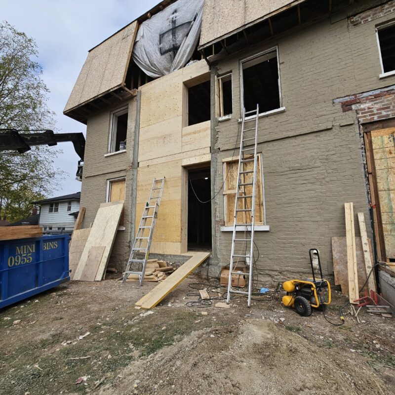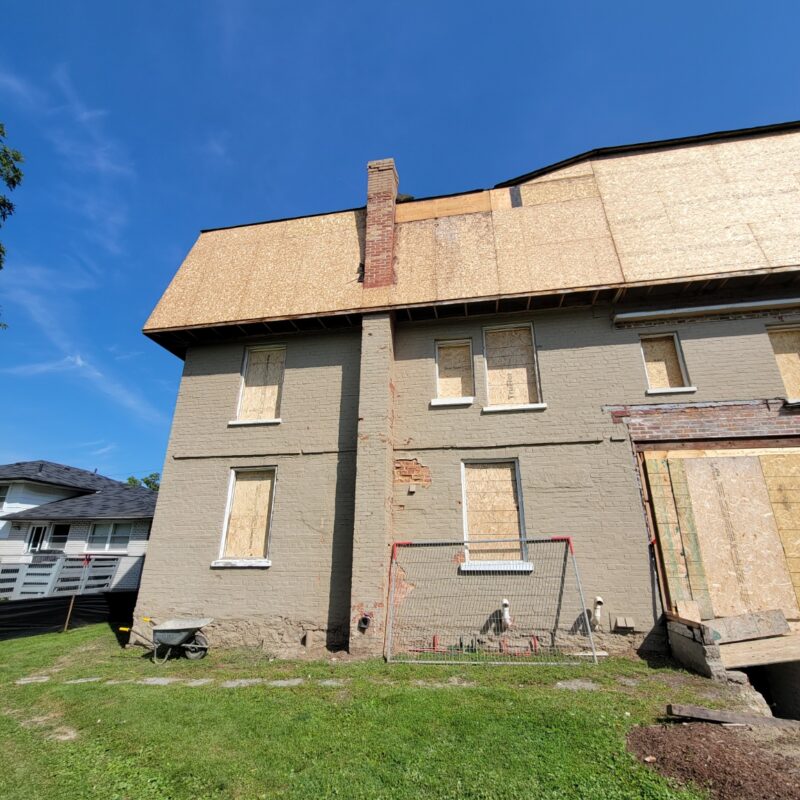 The existing 3 storey structure consisted of two portions constructed at different times with multiple renovations throughout the years. The original structure was a timber frame, masonry brick and stone structure with the original portion of the home being 100 years old. The owner’s vision was to maintain and preserve the structure as much as possible and renovate it to become a usable space for a 9-unit apartment. EC reviewed the existing structure and provided structural engineering design to upgrade, modify, and reinforce the existing structure where feasible. That included the review of the existing old floor timber joists and wood trusses. It was necessary to reinforce the existing structure to meet the current Ontario Building Code standards.